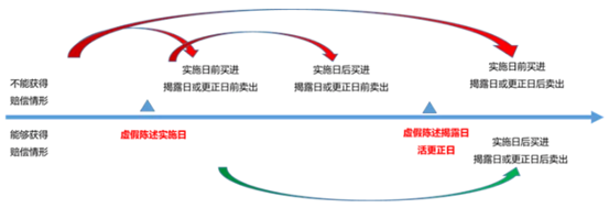 在造假实施日及以后,到揭露日或更正日之前买入股票,但在揭露日或更正日后才卖出或持有股票造成亏损的